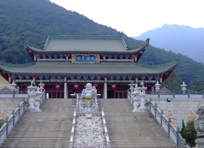俗稱“半嶺庵”。位于廣東省汕尾市海豐縣北部蓮花山森林管理區(qū),距海豐縣城13公里,在蓮花與銀瓶兩山環(huán)抱的雞心山上。始建于明崇禎六年1633年),為高僧印真和尚向合邑縉紳商戶募款所創(chuàng)建,原址在寺對面5里之蓮花山下,因破曉時慈任常聞雞心山有公雞啼鳴,認(rèn)為靈瑞而遷于今址。寺后群峰疊起,翠秀異常。沿山門踏階而上,徑旁松杉交翠,郁郁蔥蔥,涼風(fēng)習(xí)習(xí)。周圍有“如來盤石”、“獼猴奇石”、“犀牛望月”、“玉龍噴須”、“三井回音” 等自然景觀;并有開山祖師印真和尚墓塔、明末天然奇石彌勒佛像、東洋古銀幣等文物古跡;還有生長于山上500多年的長葉竹柏和6.55米仙茶古樹、土沉香、巴戟天等國家保護(hù)的珍稀樹種。