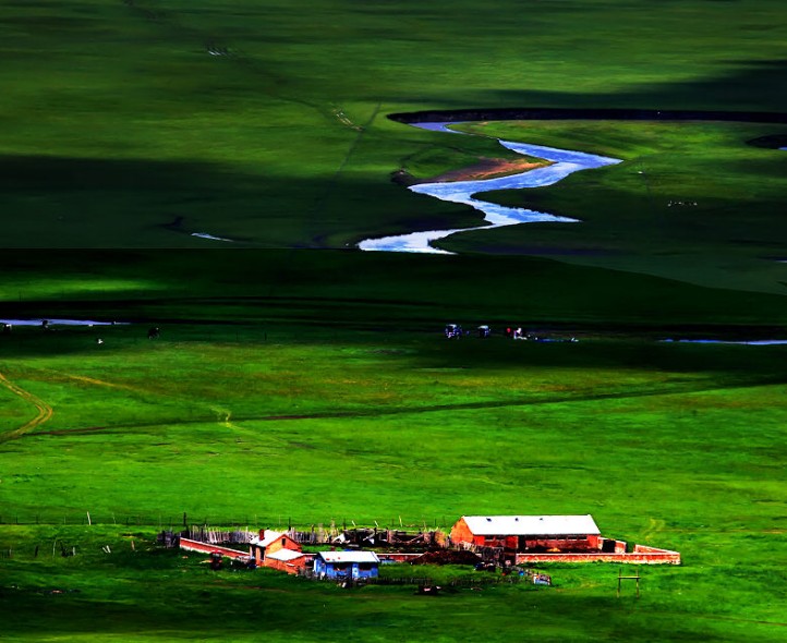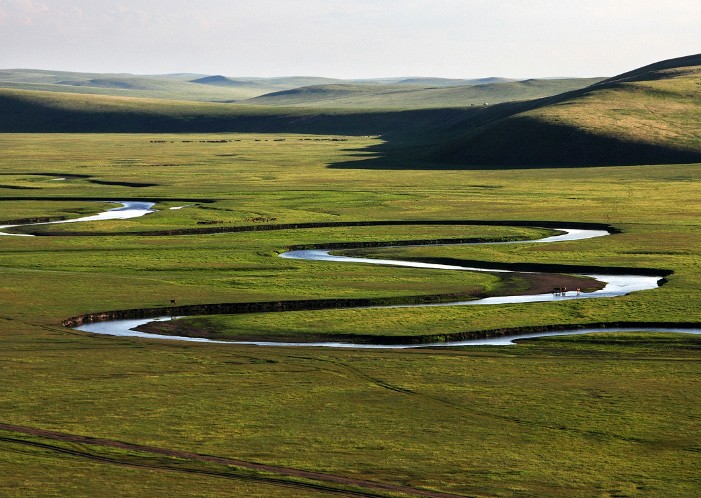 在呼倫貝爾的陳巴爾虎草原深處有一條“天下第一曲水”之稱的莫爾格勒河,金帳汗蒙古部落也位于這里,此地是以游牧部落為景觀的旅游景點。這里是呼倫貝爾有名的天然牧場,每到水草豐美的季節(jié),這里就會聚集很多游牧的牧民,形成一個自然的游牧部落。茫茫大草原上茵茵的牧草,彎彎曲曲的河水,成群的牛羊,點點的蒙古包……構(gòu)成了一幅完美的草原風(fēng)情畫。