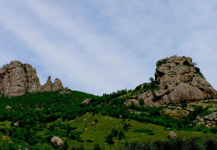 山上巖石千姿百態(tài),劈山石、仙人橋、一線天、崖洞等險峻峭拔;醉臥雙獅、談心巖、三仙巖、望日臺等宏大雄奇;喇嘛巖、獨秀巖、母子巖、朝圣巖、望景峰、熊巖等維妙維肖,呼之欲出;香爐巖、臥馬巖、玉屏峰、繡球石等小巧可愛,形神兼?zhèn)?。諸峰渾然天成,橫縱俯仰,遠近高低則景致迥異。喇嘛池、南八仙、中岳、南岳、烏龍洞,別有洞天,或巖、水、林相映成趣,或自鑄一格,別成一景?!?/p>