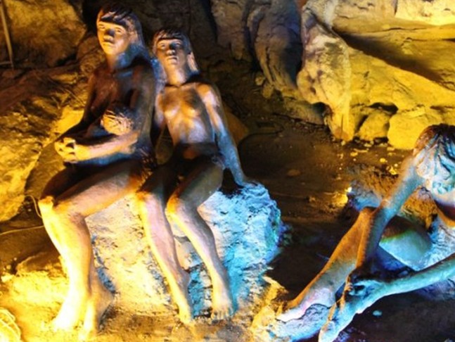 獅子巖以出土“馬壩人”頭蓋骨和“石峽文化”遺址而蜚聲中外。馬壩人是介于中國猿人和現(xiàn)代人之間的一種古人類,考古學(xué)家和藝術(shù)家在銀巖內(nèi)塑造了12萬年前馬壩人的生活群像,在桂花巖內(nèi)再現(xiàn)了四五千年前馬壩新人生活群像,洞外有多種游樂設(shè)施,有仿古式的“野烤洞”和“狩獵沖”,可乘仍古獨(dú)木舟游洞中湖。