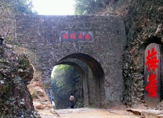 梅關(guān)關(guān)樓地處梅嶺山巔,以“關(guān)隔斷南北天”的氣勢(shì),聳立于梅嶺分水界上,故有“一步跨二省”之說。古時(shí)這里原沒有關(guān),先秦時(shí)梅嶺為楚之“櫪門”,又叫“南戒門”。秦始皇統(tǒng)一中國后,這里始設(shè)橫浦關(guān)。版權(quán)所有山東聊城聊之旅國際旅行社有限公司,轉(zhuǎn)載必究!舊址在今雄余公路上,人稱小梅關(guān)。今殘存的梅關(guān)關(guān)樓稱大梅關(guān)。它是江西省重點(diǎn)文物保護(hù)單位。梅關(guān)始建于宋代嘉祜八年(1063年)。縣志載:“江西提刑權(quán)知南安軍,蔡挺立梅關(guān)以分江廣之界。”梅關(guān)因戰(zhàn)爭(zhēng),使關(guān)樓累圮累修,現(xiàn)存的殘關(guān)關(guān)樓,是明萬歷二十六年(1598年)重修的。原關(guān)樓分兩層建筑,上層為瓦房,下為城門。今上層已倒塌,僅存關(guān)門。門洞深5.5米,內(nèi)寬3.5米,高3.5米,洞門內(nèi)兩側(cè)墻留有閘門逢道和閂門洞眼,說明關(guān)門也重疊數(shù)層,真所謂“一夫當(dāng)關(guān),萬夫莫敵”。城門上,南北二方都有石匾,南面石匾陰刻的是“南粵雄關(guān)”四個(gè)大字,未注落款。城門二側(cè)有聯(lián)曰:“梅止行人渴關(guān)防暴客來”。系光緒癸未年閩汀李化題。北面城門上石碑刊刻的是“嶺南第一關(guān)”五個(gè)大字,落款是明萬歷南雄知府蔣杰書。東側(cè)是登關(guān)樓的惟一蹬道。西側(cè)3米,豎立有一塊赭紅色大石碑,上刻有“梅嶺”兩個(gè)大字,碑高2.7米,寬1.2米,清康熙年間知府書題,字剛勁有力。
