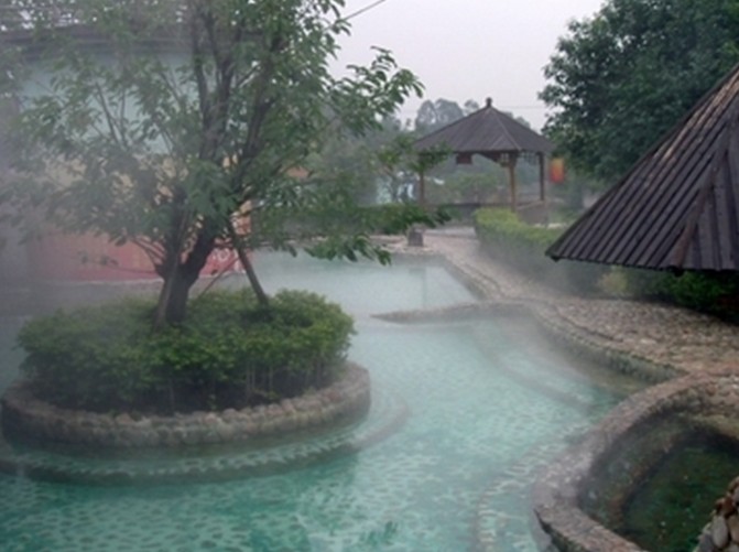 龍華山溫礦泉度假村位于粵北古鎮(zhèn)南雄市西北6公里的龍華山麓腳下,豐富的天然溫泉蘊(yùn)藏其內(nèi),大自然賜予四口日夜不停流,人們可聞可飲的自涌重碳酸溫泉口,被地礦部斟評(píng)為“珍稀溫礦泉水”。度假村經(jīng)名山高人斟點(diǎn)依大風(fēng)水格局,合溫泉自涌地點(diǎn),北建天池面積200平方,分高、中、低溫池、水療臺(tái)。在泡溫泉中體會(huì)“洗棄煩心事,又是好一天”的境界。南建八卦溫泉,把人的十二生肖鑲?cè)氚藗€(gè)卦位池,在泡溫泉中體會(huì) “沐八卦,轉(zhuǎn)乾坤”的作用。南北之中建有長(zhǎng)50米面積1000平方的溫泉游泳館,地下溫泉迷宮,在泡溫泉中體會(huì)“下地入宮尋往事,死去活來又一回”脫俗之感。東南建有保健中心,水上餐廳,西南建有風(fēng)格各異的賓館區(qū)和別墅區(qū),以營(yíng)造家庭氛圍,鄉(xiāng)土風(fēng)情,風(fēng)水與人體相合為主題,體會(huì)“日沐溫泉浴,夜聞鳥蟲鳴,春夢(mèng)一覺醒,仿如在仙境”。