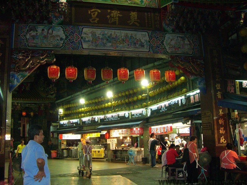 基隆廟口的小吃最早可溯源至日據(jù)時(shí)代,而今日『廟口』已成為眾所周知的觀光地點(diǎn),基隆廟口因位于俗稱『圣王廟』的『奠濟(jì)宮』前而得名;奠濟(jì)宮建于公元1873年,迄今已有100多年的歷史,是名副其實(shí)的百年古剎;奠濟(jì)宮供奉的是開漳圣王,是唐朝的陳元光將軍,開漳圣王是河南人,在公元686年奉命平定閩粵有功,因此死后封為開漳圣王;當(dāng)時(shí)由基隆地方士紳白番,有濟(jì)堂連新永、自楊傳等購買外木山十多頃田地為廟產(chǎn),以木料建廟其上,但是后來由板橋望族林本源等捐獻(xiàn)現(xiàn)在仁愛區(qū)王田里的土地再由地方士紳張金發(fā)及賴武等人捐款,并獲得地方熱烈響應(yīng),入廟后可見排列整齊的紅色大石柱,上面刻有敬神對(duì)聯(lián),正殿主神前的花鳥石柱則是日治時(shí)期建的,因?yàn)槿杖顺缟谢B之故,龍柱則是第二次世界大戰(zhàn)所造,展現(xiàn)了中國寺廟的風(fēng)格特色。