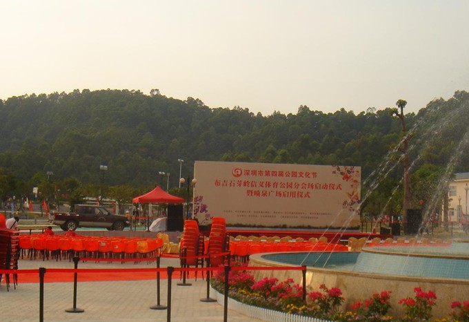 布吉公園的大門是一座頗具中國特色的建筑牌坊,分為左、中、右三個門,左右邊兩旁門較小,中門高大聳立,上書“布吉公園”四個大字。進入布吉公園正中是一處空地,空地進去,跨過小橋是一座頗大的涼亭和樓臺,湖水環(huán)繞過涼亭和樓臺,往左是一處面積頗大的人造湖,可供游人“劃小艇”,再往上就是一座山丘,山丘頂端是一座三層高的“望亭”,可遠眺整個布吉,也是整個公園的中心地帶。