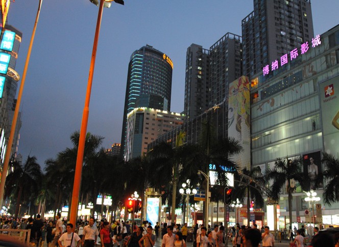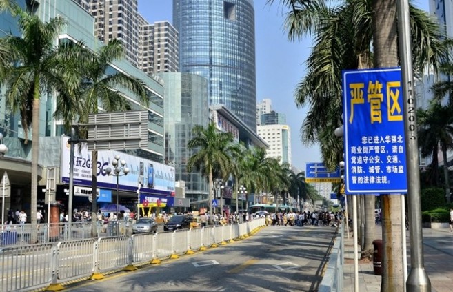 華強北商業(yè)區(qū)平均日客流量逾50萬人次,是深圳市最旺的商業(yè)中心之一,被譽為深圳的“南京路”。