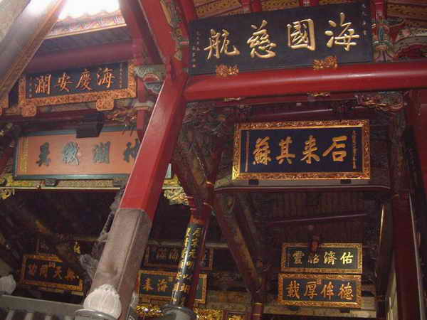 走進臺南大天后宮時,才發(fā)現(xiàn)大天后宮那富麗堂皇,威嚴顯赫的氣派,已極盡了宮殿建筑的豪華壯麗。由大門朝里望,透過三進逐次升高的天井和房舍狹長的空間,可以遙見那香煙繚繞、金黃帷幕下的全身媽祖神像。廟宇堂皇壯觀,信徒眾多,香火鼎盛。由于受到歷代官府的整修和保護,大天后宮內(nèi)文物保存較多。廟中神像佛像也多為名家雕塑,石雕、木雕的柱、窗、梁都有很高藝術(shù)價值。還有許多古碑、古匾、古聯(lián)等珍貴的文物,據(jù)說單單古匾就有200多塊,平時無法全部掛出來。最寶貴的是雍正皇帝所賜的“神昭海表”、咸豐皇帝的“德侔厚載”、光緒皇帝的“與天同功”等御筆匾。由此可見,大天后宮與普通天后宮、普通廟宇相比,簡直就有一個天上、一個地下的感覺。