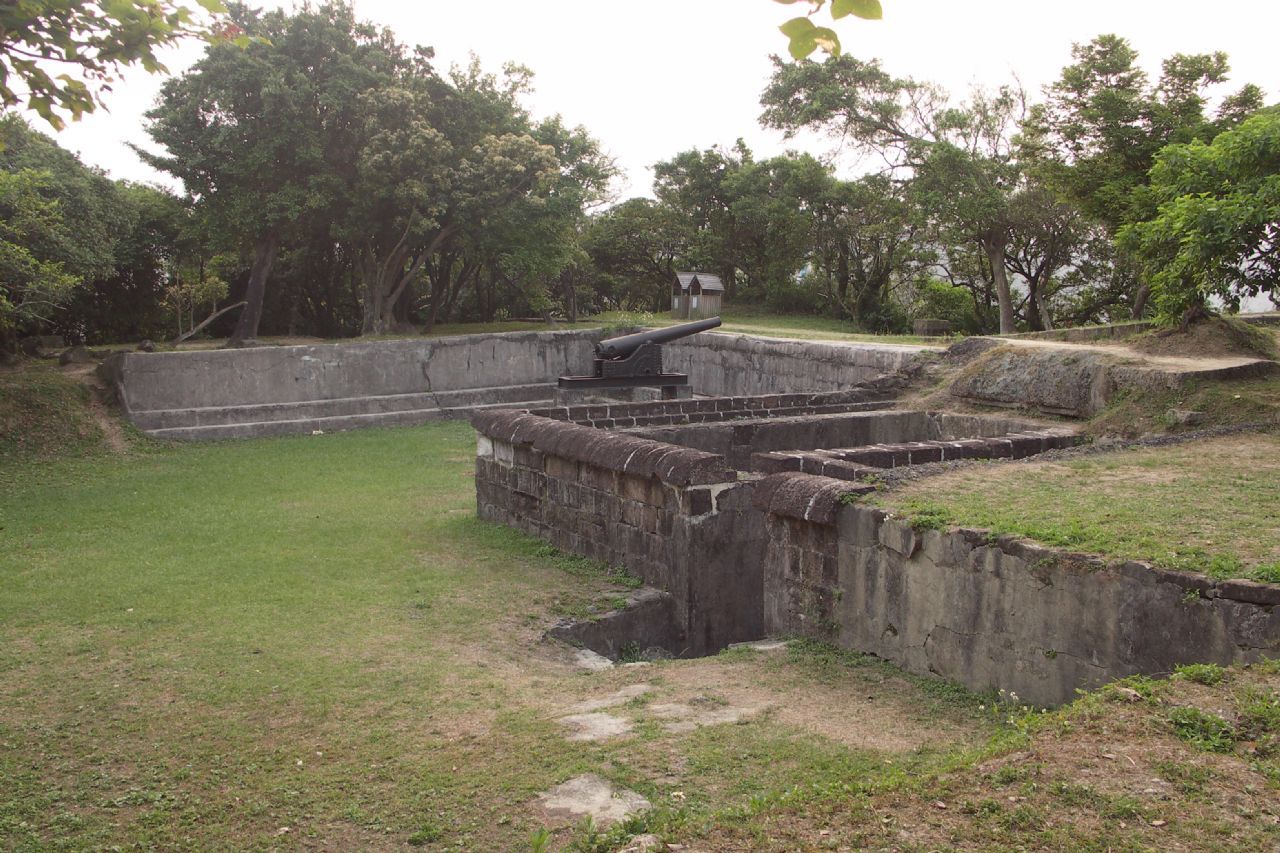 二沙灣炮臺現經重修,已約略可見當年古炮堡壘的風發(fā)英姿。勒有“海門天險”四字的城門為全區(qū)的精神象徵,穿過古意盎然的拱門,映入眼簾的是石鋪的廣場通道,兩側原為兵舍營房,如今僅剩斷垣殘壁及如茵綠草;由通道盡頭的臺階拾級而上,即抵海門天險的精華——古炮區(qū),數門外觀依舊完好的古炮,以及碉堡、炮墩、彈藥庫、古井等遺跡,發(fā)人幽思,由此俯望基隆港口,依稀可感受當年戰(zhàn)事的激烈。