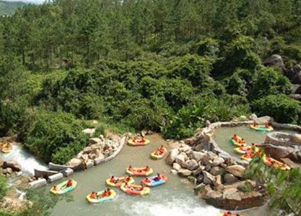 金水臺漂流,位于廣東省佛山市高明區(qū)楊和鎮(zhèn)與鶴山市交界的佛山第一峰皂幕山山下的金龍峽生態(tài)風(fēng)景區(qū)內(nèi)。景區(qū)四面山巒跌宕、霧繞群峰、鳥語花香、曲水回環(huán)、瀑瀉千尺、碧波幻影,谷深通幽處,風(fēng)光無限好!到此漂流,如入仙境博舟,似在畫中暢游,激流險灘迭起,刺激、逍遙,不亦樂乎!