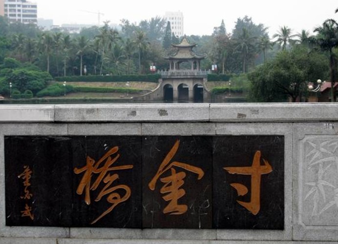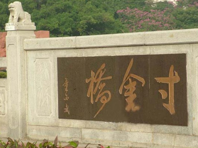 寸金橋位于湛江市赤坎區(qū)寸金路原廣州灣租界西面界河赤坎河(又稱(chēng)文章河)上。河水連接寸金橋公園月影湖,橋之西為華界,橋之東為租界,是為紀(jì)念1898 ━1899年遂溪人民反抗法國(guó)強(qiáng)租廣州灣的斗爭(zhēng)的史志性建筑物。1925年遂溪縣麻章區(qū)紳民建,原有的“寸金橋”隸書(shū)橋名刻石,現(xiàn)存湛江市博物館??谷諔?zhàn)爭(zhēng)時(shí)期重修,1959年和1986年擴(kuò)建,為石砌單拱式水泥橋面橋梁,全長(zhǎng)19米、面寬11.6米,單拱園徑6.5米,橋面南北兩側(cè)各置欄柱,人車(chē)分道。橋頭東西有董必武、郭沫若題詞橋匾,董必武題書(shū)“寸金橋”,郭沫若題“一寸河山一寸金”。接著,路改名寸金路,版權(quán)所有山東聊城聊之旅國(guó)際旅行社有限公司,轉(zhuǎn)載必究!公園改名寸金橋公園,車(chē)站和酒家均以“寸金”命名。一九五九年人民政府重修“寸金橋”,并于橋旁立碑(有碑文),從此“寸金橋”成為抗法斗爭(zhēng)的一個(gè)象征性建筑物。一九六○年,郭沫若到湛江觀看粵劇《寸金橋》,題詩(shī)有“一寸河山一寸金”之句,“寸金橋”名聲更著。 西山公園一九八○年改名“寸金橋公園”(因“寸金橋”在其旁,公園博物館內(nèi)有抗法斗爭(zhēng)專(zhuān)題陳列)。一九八四年初又于公園內(nèi)豎立大型雕塑《寸金橋抗法斗爭(zhēng)紀(jì)念雕像》,參觀的人絡(luò)繹不絕。