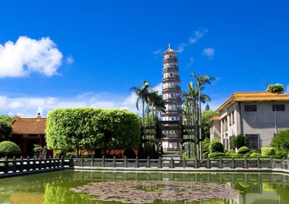 于明萬歷四十一年(1613年)元月興工,至萬歷四十三年(1615年)四月落成。初命名“文魁塔”,又稱“啟秀塔”。后因挖塔基時(shí)發(fā)現(xiàn)蛇卵三只,以以為是“三元及第”之兆,故改名為“三元塔”。在380多年前建筑工具簡(jiǎn)陋的情況下,雷州人民僅用約兩年時(shí)間就建成一座如此雄偉壯麗的高層古塔,至今已經(jīng)經(jīng)歷了將近400年的風(fēng)雪滄桑,雷轟地震仍巋然屹立,充分顯示了雷州人民的聰明才智和驚人的創(chuàng)造力。此塔坐東向西,樓閣式磚木結(jié)構(gòu),用棱角牙子磚和線磚互相疊澀出檐,下大上小,逐層遞減,比例勻稱。檐上有平臺(tái)、外廊,繞以欄桿。八觚九級(jí)、內(nèi)樓17層、高57米。塔基為石刻須彌座。八面共嵌有23塊陽雕石刻,分別為“麟趾呈祥”、“鯉跳龍門”、“獅子戲球”、“三羊(陽)開泰”、“雙鳳朝陽”、“喜鵲練梅”等,線條粗獷,形態(tài)生動(dòng),富有民族特色和地方風(fēng)格,為明代石刻珍品。每層設(shè)真、假門,呈圭角形。真門對(duì)開相連通,利用塔壁為階梯由下而上,穿過塔心室,繞平座(塔廊)、南入北出、東進(jìn)西升、盤旋而上,可達(dá)極頂。三元塔建成后,雷郡形勝大為改觀,“鼎峙瓊南添一指,聯(lián)翩雁字豫題名”。 版權(quán)所有山東聊城聊之旅國際旅行社有限公司,轉(zhuǎn)載必究!后來“雁塔題名”成為雷陽八景之一。古往今來,不少騷人墨客、名宦顯貴慕名登臨,留下不少膾炙人口的詩文,其中明代海北南守道蔣光彥(福建晉江人,進(jìn)士)有詩贊道: