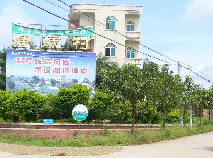 塘底村地處新民鎮(zhèn)西北部,全村現(xiàn)有人口1182人,耕地面積490畝,種果面積450畝,2005年實現(xiàn)人均純收入達3000多元。近年來,該村致力把村容、村貌環(huán)境建設作為新時期農村工作的首要任務來抓好,高標準、高起點建起了初具規(guī)模的生態(tài)文明新農村。至2005年底止,全村共投資280多萬無,清除雜竹1200多叢,28000多根,清理雜屋80多間,1500多平方米,推土8000多立方米,填污水塘5個,建設環(huán)村道5.8公里,建設文化樓一幢,燈光球場一個,大舞臺一個,種植大王椰108棵、蘇鐵106棵、黃金梅球88個、黃皮果苗1600株、草皮1000平方米,綠化面積達3900平方米,房屋門前硬底化面積3500平方米,從而使整個村莊的精神面貌煥然一新。該村在抓好生態(tài)文明村建設的同時,著力抓好社會治安綜合治理和民主法制教育以及反腐倡廉教育,村中無打架、斗毆、吸毒、賭博,無重大刑事案件發(fā)生。近年來,該村先后被授予廣東省文明村、廉江市生態(tài)文明村、無毒社區(qū)、安全文明小區(qū)和湛江市優(yōu)秀安全文明小區(qū)、湛江市民主法治示范村等光榮稱號,是省、市反腐倡廉教育進農村示范點。