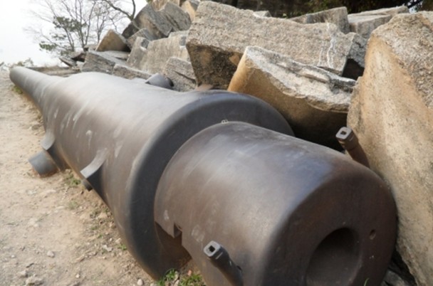 獅崗炮臺在端州區(qū)北郊七星巖東北的獅崗,建于1920年,是肇羅陽鎮(zhèn)守使林虎在肇慶所筑的七座炮臺之一。炮臺由三個部分組成:崗頂建指揮部,崗上另有兩個防御工事。指揮部在崗的制高點,為圓形暗堡,直徑2.35米,高l.9米,堡頂丘形,堡內(nèi)有槍眼、壁龕,南面通道口接坑道,坑道平面為曲尺形,全長24.6米,寬1.5米。