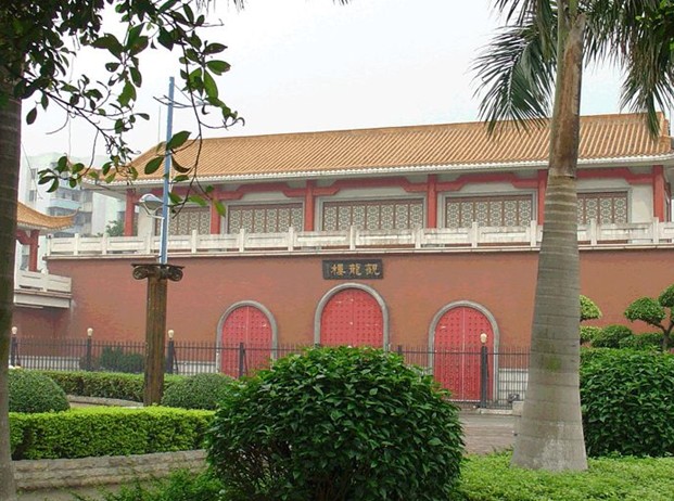 觀龍樓位于愛亨村東南面的牛頭山頂。民國24年(1935年)孫科任中山紀念中學校董會主席時,與廣東省農業(yè)廳商定建立孫中山故居農業(yè)所而興建的農業(yè)所辦公室。1984年翠亨賓館興建時,將牛頭山及這座樓房接管,辟為游覽點。這幢樓紅墻綠瓦,門前兩條石柱繞著兩條龍,栩栩如生。這里憑高遠望,可清楚望見唐家半島和淇澳島對峙的金星門(金星港),左、右兩個島成長條狀,形似臥龍,正中的金星島,嬌小玲現(xiàn),宛若一顆小珍珠。每當晨曦破曉時望過去,恰似一幅“二龍爭珠”奇景。