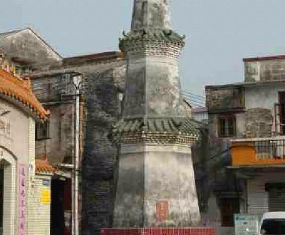 龍瑞塔位于廣東中山市沙溪鎮(zhèn)溪角龍瑞村,建于明代,是鄉(xiāng)民為紀(jì)念溪角祖先而建。相傳宋代時此處有一塊一人高的石板,稱為企人石,建塔時把企人石含于塔內(nèi)。該塔為八角攢尖頂,內(nèi)為實心體,底面周長12.8米,高5層,約11米,為六角攢尖頂,樓閣式磚結(jié)構(gòu),紅方磚鋪地。底層面積39平方米。第五層窗額鑲嵌有“天章”石匾,門額石匾陽刻楷書:“云漢為章”。
