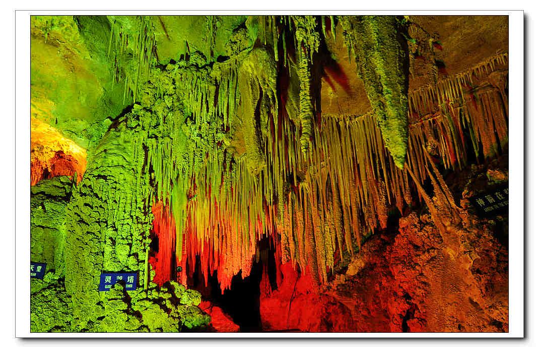 洞內(nèi)石花面積占到了所有化學沉積類型的60%以上,被中科院地質(zhì)研究所陳詩才教授稱之為“中國最大的石花洞穴”。各種石花以石珊瑚為基座,有針尖狀、球粒狀、葡萄狀、樹叢狀、蘑菇狀、菌塊狀、晶塊狀等,千姿百態(tài)、應(yīng)有盡有。其中大部分仍在生長中,質(zhì)地純凈、組合精巧、高貴細膩,在五顏六色的彩燈照耀下,仿佛一座正值盛期的天宮花園,美輪美奐。