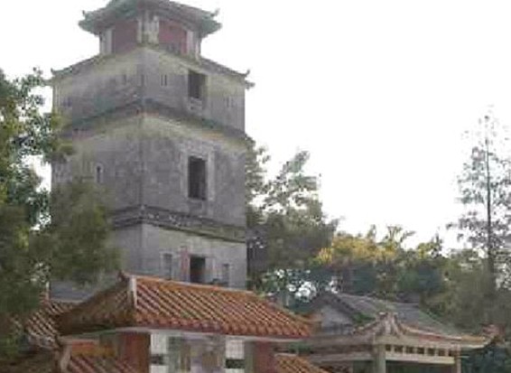 又稱聚星閣。位于中山市三鄉(xiāng)鎮(zhèn)鴉崗村,占地面積約2500平方米,始建于道光乙已年(1845年),清咸豐五年(1855年)和同治元年(1862年)重修,閣前置有同治元年(1862年)加建的四角亭一個。閣通高17.8米,一至四樓每樓面積4平方米,五樓2.5平方米,一層為"文武殿"設(shè)有道光二十五年(1845年)鐵鐘一座,咸豐五年(1855年)坤甸木刻鏤孔浮雕神臺一張;二層為"觀音殿";三層為"財帛殿";四、五層為觀光用。