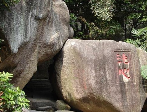傳說古代官村一帶連年干旱,觀音大仕返回南海途經(jīng)此地,看到旱情,百姓要到遠(yuǎn)處挑水抗旱,觀音大仕看到百姓疾苦,忙查原因,原來(lái)是一火龍作怪,觀音大仕把它收服,用手上的楊枝凈水點(diǎn)化火龍,使它化作赤色金鯉,吐水為澗,并在溪澗下的潭中撒播白蓮造福百姓,因而該處變得山清水秀,奇石嶙峋,石疊石,洞串洞宛如仙境;數(shù)千年后一日,赤鯉想試試自己的法力,向天空吐出一口五彩仙氣,直沖九霄,驀地蒼天降下一朵絢麗的紅云,紅云飄揚(yáng)現(xiàn)出一條金龍,向凡間噴出九條神氣,瑞光奪目,九條神氣瞬息間化作九條金龍,飛落在湖邊嬉戲。赤鯉不覺自慚形穢,從此勵(lì)志修行。赤鯉的精誠(chéng),感動(dòng)了如來(lái)佛祖,遂派觀音下凡點(diǎn)化赤鯉升天,但赤鯉已變成了龍化石,臥于山坳的蓮花叢中,嘴里噴著一胍清泉,人謂“龍泉水”,泉噴三尺,清芬沁人,終年不竭。赤鯉圓寂時(shí),曾吐一玉珠在山澗,化作蓮臺(tái)。下到凡間的觀音見蓮臺(tái)如花,不禁心動(dòng),便不返天上,隱居于山上巖洞,從此山上有了觀音巖,觀音打卜的專訪,化作一塊碩大列朋的“木魚石”。觀音口中念出的“南無(wú)阿彌陀佛”變成了字跡,散布在各塊巖石上。后來(lái)當(dāng)?shù)匕傩諡榱擞浤钣^音的圣跡,在觀音落腳的山洞建立了廟宇,還建有涼亭,石凳。