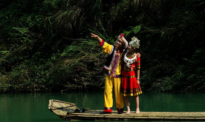 沿途會體會到:艇行水上,灘塘相連,水碧山青、波光粼粼,兩岸翠竹環(huán)繞,絕壁連綿,苗家情歌回蕩山谷,仿佛置身于山水畫中一般。