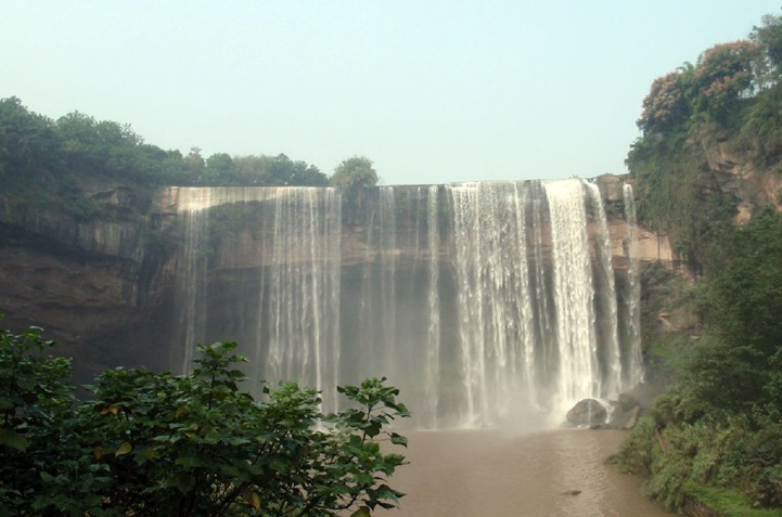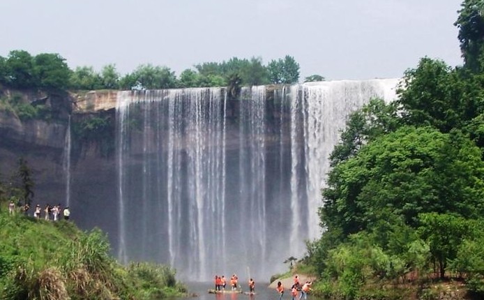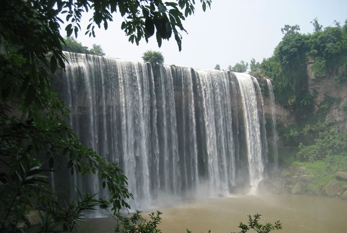 青龍瀑布(Qinglong waterfall)位于萬州區(qū)甘寧鄉(xiāng),距萬州城區(qū)30公里,景區(qū)面積60.13平方公里。這里是三國(guó)時(shí)期大將軍甘寧的故里。經(jīng)過專家測(cè)算,青龍 瀑布高 64.5 米,寬 115 米,比著名的黃果樹瀑布尚寬 19 米,是名副其實(shí)的亞洲之最。瀑布面積達(dá)7417.5平方米,是重慶市級(jí)風(fēng)景名勝區(qū)。該地區(qū)屬于典型的喀斯特地貌,山石陡峭,森林茂密。該瀑布的獨(dú)特之處不僅僅是因?yàn)樗男蹅验?,而是瀑布的走向是呈弓形,這使得瀑布成為名副其實(shí)的水簾洞。沿著瀑布內(nèi)部的小道前行,從瀑布里面眺望外面的景色,另有一番滋味。瀑布之下有一約 2000 平方米的石洞,造型奇特,令人神往,是游人坐洞觀瀑的絕佳去處;瀑布下游水草鮮美,落英繽紛,儼然陶翁之桃花源也。不遠(yuǎn)處是甘寧將軍墓和甘寧雕像。青龍瀑布上游是甘寧水庫,是垂釣、蕩舟的好去處。對(duì)比中國(guó)其他地區(qū)的風(fēng)景名勝,青龍景區(qū)在自然景觀與人文景觀上都毫不遜色。
