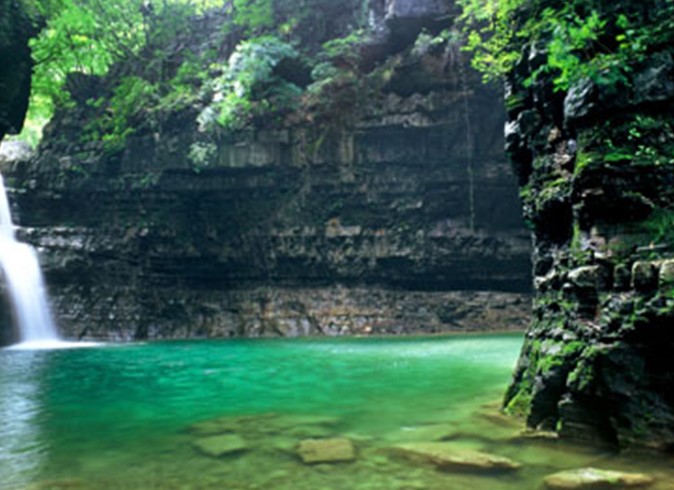 虎跳崖景區(qū)以秀美的山水吸引八方游客。虎跳崖瀑布好似一座珍珠屏風掛在山腰,俏儷怡人,濺起的水珠晶瑩剔透,風又把它吹的如煙如霧,清澈的溪水宛如銀鏈纏繞在群山腳下,水中游蕩翻轉(zhuǎn)的細鱗魚在陽光的照耀下不時映出道道銀色的光芒,如詩如畫。順流而下,便可進行20公里流程的三道沖河漂流—龍鳳山水庫的源頭漂流,沿岸風光秀麗,水流清澈透底。時而激流湍急,驚險刺激,時而穩(wěn)流如靜,平緩蕩漾,令人留漣忘返。