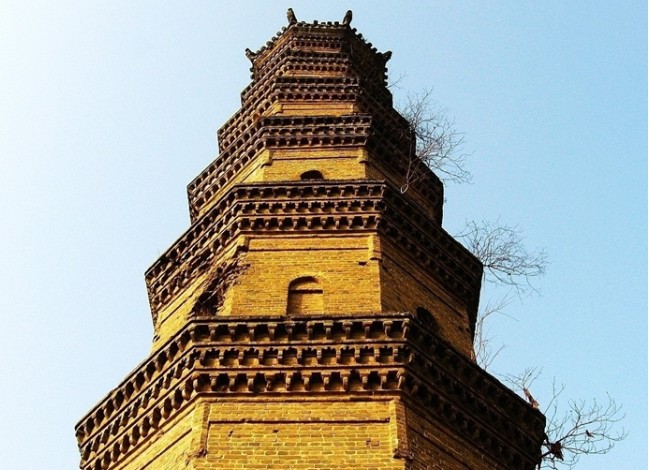 薛閣塔在安徽亳州老城東南,是一座磚塔。直椎式八角開,共七層,高34.15米,周圓23.36米。塔座由八塊青石奠基。塔一二層為仿木結(jié)構(gòu),每角砌磚為方柱,高3.5米。柱上仿高50公分。仿上為塔檐、上并飾以斗拱、昆蟲、鳥卉花紋,登塔門面向東北,有螺旋式臺階,塔室為一個面南的小龕,可能是供俸神象用的,現(xiàn)空無一物。