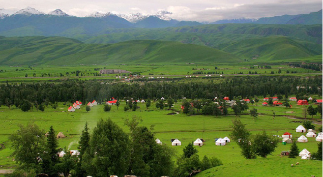 那拉提草原是發(fā)育在第3紀古洪積層上的中山地草場,東南接那拉提高嶺,勢如屏障,西北沿鞏乃斯河上游谷地斷落,地勢大面積傾斜,山泉密布,溪流縱橫。緣山腳沖溝深切,河道交錯,森林茂密,莽原展緩起伏,松塔沿溝擎柱,還有氈房點點,畜群云移,是鞏乃斯草原的重要夏牧場。 那拉提草原系亞高山草甸植物,由茂盛而絢麗的中生雜草與禾草構(gòu)成植株高達50-60厘米,覆蓋度可達75-90%。仲春時節(jié),草高花旺,碧茵似錦,極為美麗。那拉提年降水量可達800毫米。有利于牧草的生長,載畜量很高,歷史上的那拉提草原有“鹿苑”之稱。一望無垠的草原上撒落著珍珠般雪白的氈房,草原南側(cè)有終年白雪皚皚的雪峰相伴,綠草、雪峰相映成輝,構(gòu)成了一幅幅動人的畫卷,是典型的高山草原。在這里,您可以親身感受到“風吹草低見牛羊”的高山草原美麗景色。