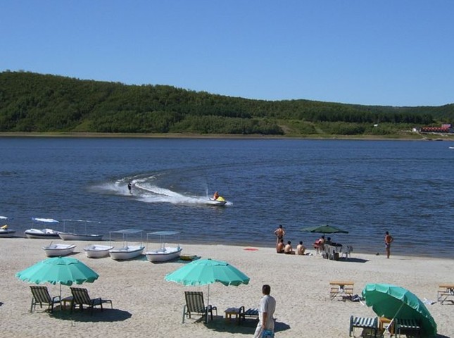 于是,后人便稱(chēng)這條河為額尼河。臥牛湖,位于黑河市區(qū)西北16公里處,緊挨著黑呼公路。起初,這里并沒(méi)有水庫(kù),只有一個(gè)名為額尼河 的小村。后來(lái),這個(gè)村子開(kāi)始搬遷,在這里攔河筑壩,修建水庫(kù)。建成后的額尼河水庫(kù)控制流域面積285平方公里,水庫(kù)面積500多公頃,水庫(kù)壩高22.8米,壩頂寬7米,黑呼公路穿壩頂而過(guò)。額尼河水庫(kù)真正產(chǎn)生影響是在20世紀(jì)90年代以后,特別是隨著黑河口岸的開(kāi)放,知名度也越來(lái)越高,名稱(chēng)也在不知不覺(jué)中變了,更多的人稱(chēng)其為臥牛湖水庫(kù),后來(lái)干脆稱(chēng)臥牛湖,而額尼河之名漸漸被人們淡忘。水庫(kù)管理部門(mén)還在大壩北端的山腳下,筑了一座銅牛雕像,以示紀(jì)念。春暖花開(kāi)后,一直到晚秋,這里吸引來(lái)無(wú)數(shù)游人,在這里劃船、垂釣、娛樂(lè)、野餐、游泳和爬山。黑河與對(duì)岸的俄布拉戈維申斯克開(kāi)通“一日游”后,版權(quán)所有山東聊城聊之旅國(guó)際旅行社有限公司,轉(zhuǎn)載必究!來(lái)自異國(guó)的游客必到臥牛湖,正如黑河的游客一定要到俄羅斯布拉戈維申斯克市的穆辛湖一樣,臥牛湖正以獨(dú)特的景致和風(fēng)情,吸引著越來(lái)越多的中外游客。臥牛湖是一片未受污染的天地,湖水清澈、透明,湖面上閃動(dòng)著粼粼波光。周?chē)荷藉藻?,?shù)多林密。這里,沒(méi)有噪音,沒(méi)有煙塵,雖緊靠公路,因不是干線,來(lái)往車(chē)輛不是很多。這里,山清水秀,風(fēng)光宜人,就連空氣也是清新無(wú)比。臥牛湖水在群山的環(huán)抱中輕輕蕩漾,有游輪在湖上自由穿梭,你可乘船盡享這畫(huà)山秀水。你可蕩舟湖上,也可張開(kāi)雙臂暢游。湖中每年投放各種魚(yú)苗150萬(wàn)尾,自繁魚(yú)60多萬(wàn)尾,年回捕量7.5萬(wàn)公斤,最高可捕10萬(wàn)公斤。有鯉、鯽、鰱、草和鯰魚(yú),釣魚(yú)愛(ài)好者可在這里大顯身手。水庫(kù)電站裝機(jī)容量640千瓦,年發(fā)電量200萬(wàn)度。冬天,結(jié)冰的湖面就是天然的冰場(chǎng),可滑冰、滑雪、玩冰帆、玩雪橇。為了發(fā)展冰雪旅游,臥牛湖風(fēng)景區(qū)正準(zhǔn)備投資興建正規(guī)的滑雪場(chǎng)。臥牛湖西南有7處礦泉,泉泉相通,排列猶如北斗星,被稱(chēng)為“北斗七泉”。泉水自然噴涌,日夜不息,其中四泉日涌水量達(dá)500噸,泉水中含有多種微量元素,為優(yōu)質(zhì)碳酸冷礦泉水。據(jù)說(shuō),早在30年代,北斗七泉的礦泉水就有“長(zhǎng)壽水”的美譽(yù)。