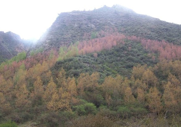 阿姨山海拔3698米,山體輕盈秀麗,如亭亭玉立之少女,山上遍布松、楊、灌木、蔥郁滴翠。
