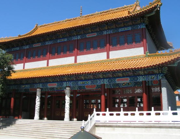 大乘寺又稱大佛寺。位于齊齊哈爾市鐵鋒區(qū)木海街與民航路交叉口、西滿革命烈士陵園南側(cè)。建于1943年,占地面積3.1萬(wàn)平方米。坐北朝南,有前后兩座大殿。廟門(mén)向南,正中一座大門(mén)樓。大殿及門(mén)樓皆為黃釉琉璃瓦覆蓋,院墻按八卦建造,廟宇采用斗拱式建筑,玻璃瓦覆蓋,大雄寶殿脊中央的麒麟背馱一座玲瓏寶塔經(jīng)幌,與綠色琉璃瓦組成的“大乘寺”三個(gè)大字交相輝映,具有濃郁的宗教色彩。