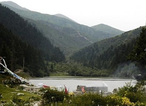 位于王夏公路約10公里處,距縣城17公里,是一潭構造成因的斷崖地形之湖盆。湖面海拔三千米左右,呈狹長形,湖濱周圍怪石嶙峋,虬松四出。湖南北長約350米,東西寬約百米,面積約有五十余畝。湖濱地形開闊,外圍前塬是平壩草甸,三面環(huán)山,山上森林密布,林中百鳥群集,湖中魚類繁生,湖畔野草叢生,百花盛開,湖光山色,令人陶醉。人們形容達宗湖象一顆鑲嵌在密林幽谷里的明珠,在高山峽谷之巔放射著耀眼的光芒! 達宗湖是附近群眾尊奉的“神湖”之一,湖畔前塬、箭桿林立、經(jīng)幡飄舞。每逢六月,各地香客絡繹不絕地來到這里朝圣插箭。這時,整個山巒香煙繚繞,海螺聲聲,響徹云霄。男男女女手轉經(jīng)輪,口誦經(jīng)文,按順時針方向繞湖三周,然后投擲寶瓶,祭祀神湖,以求神靈保佑,祈愿五谷豐登,人畜兩旺。 達宗湖不僅是高原優(yōu)良的牧場,也是水鳥群集的天然樂園。