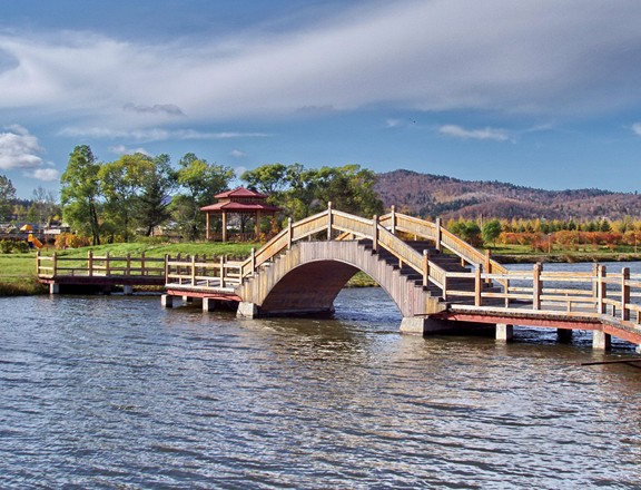 中國林都木雕園是以展示木雕藝術為主的特色公園,該園建于2002年7月30日,占地面積為3萬余平方米。公園內全部木雕作品的材料均取自于小興安嶺優(yōu)質木材,由本地藝術工作者和浙江東陽雕刻工匠設計和雕刻完成。該園具有著濃郁的地方風情特色,是目前國內最大的木雕園林。