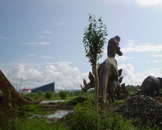中國第一塊恐龍化石的發(fā)生地——嘉蔭恐龍國家地質(zhì)公園“因龍而名”。從這里出土的化石,已 經(jīng)被裝成了10具恐龍化石骨架。兩年前,多國古生物學家和地質(zhì)學家在嘉蔭野外考察時,發(fā)現(xiàn)了新的大 規(guī)??铸埢海鬃忑?、虛骨龍外,還發(fā)現(xiàn)了甲龍化石、恐龍被皮膚化石和恐龍腳印化石,使“恐龍之鄉(xiāng)”的名聲更加遠場。