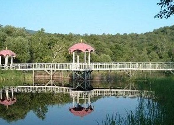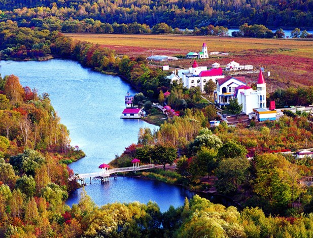 臨近回龍灣,只見(jiàn)具有古典建筑風(fēng)格,版權(quán)所有山東聊城聊之旅國(guó)際旅行社有限公司,轉(zhuǎn)載必究!上書(shū)“回龍灣山莊”幾個(gè)大字的門(mén)樓赫赫然映入眼簾。沿石甬路來(lái)到渡口-----“湯旺第一渡”,是進(jìn)入回龍灣山莊的惟一渡口。位于山莊牌樓東500米處,在河兩岸各有一座造型別致的懸索墩臺(tái),上有振翅飛的大型雕塑天鵝,將100余米鋼纜銜于口內(nèi),東拉西扯,蕩悠悠橫于碧波之上。木制懸浮碼頭,隨水勢(shì)起落調(diào)整高低。鐵殼雙舟并聯(lián),每次可載60人左右,雙舟在河水沖擊下,滑輪滾動(dòng),兩岸擺渡,既安全又充滿(mǎn)情趣,真可謂舟在水中游,人在畫(huà)中走。渡過(guò)百余米寬的湯旺河,棄舟登岸,映入眼簾的是刻有黑龍江省副省長(zhǎng)、原伊春市市委書(shū)記王東華同志的題詞“青山無(wú)限美,碧水寄真情”的石牌。再往前走就來(lái)到了回龍灣正門(mén),正門(mén)上書(shū)“湖山勝境”,言外之意,跨入此門(mén)才算真正來(lái)到回龍灣山莊。沿著由水泥預(yù)制板鋪成的小路往前走,展現(xiàn)在我們面前的是一尊造型獨(dú)特、妙趣橫生的“黑龍騰天”雕塑。黑龍眼望長(zhǎng)空,尾巴翹立,欲騰飛離去,卻又顯出無(wú)限的眷戀之情,意味著不愿離開(kāi)這美麗的地方。臨清別墅:屬回龍灣風(fēng)標(biāo)志性建筑,臨河而建,外觀為典型的歐式風(fēng)格。哥特式的紅色尖頂及拜占庭式的主體框架,配以乳白色的歐式風(fēng)格。哥特式的紅色尖頂及拜占庭式的主體框架,配以乳白色的白色的墻壁、碩大的藍(lán)色落地窗,顯示出浪漫的一國(guó)情調(diào),其每層風(fēng)格各異。一樓為會(huì)客室,寬敞明亮,一幅巨大的太公垂釣?zāi)镜窀接趶d壁,角落有日式內(nèi)室稱(chēng)為“和寮”;二樓的“漢閣”正墻上懸掛一幅精心裱褙的字軸,上面完整地記敘了回龍灣開(kāi)建設(shè)歷史;三樓為“獵舍”,彷舊時(shí)獵舍居室風(fēng)格裝修,古樸典雅,耐人尋味。蒙古村落:位于回龍灣南于東皋臺(tái)隔灣相望,有五座敖包組成。錯(cuò)落有致地排列于萋萋芳草中。一架勒車(chē)閑置在包前,幾只散養(yǎng)的牛羊在沒(méi)膝深的野草叢里悠然吃草,裊裊炊煙從敖包頂端升起.不時(shí)有身著鮮艷民族服裝的姑娘手托著香氣撲鼻的菜肴出入包中,儼然成吉思汗的子孫們活生生的場(chǎng)景.此時(shí)那首有名的"敕勒川,陰山下,天似穹廬,籠蓋四野,天蒼蒼,野茫茫,風(fēng)吹草低見(jiàn)牛羊"的 《敕勒歌》便會(huì)自然涌上腦海.敖包內(nèi)裝飾極具民族風(fēng)格,是游人就餐之地.熏羊腿、燒牛寶、手把肉、烤全羊等佳肴,其味美純正,風(fēng)味十足,定會(huì)使你大飽口福.