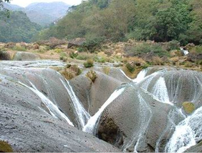 銀練墜瀑布在天星橋景區(qū)內(nèi),離黃果樹瀑布只有7公里。銀練墜瀑布銀練墜灘瀑布位于螺絲灘瀑布下游2公里處,由許多小瀑組成,總高40余米。周圍有天星橋風景區(qū),區(qū)內(nèi)有天星洞、水上石林等景點。銀練墜灘瀑布是景區(qū)內(nèi)形態(tài)最美的瀑布,水圍圓石而下,宛如條條銀練墜入深潭,絢麗無比。