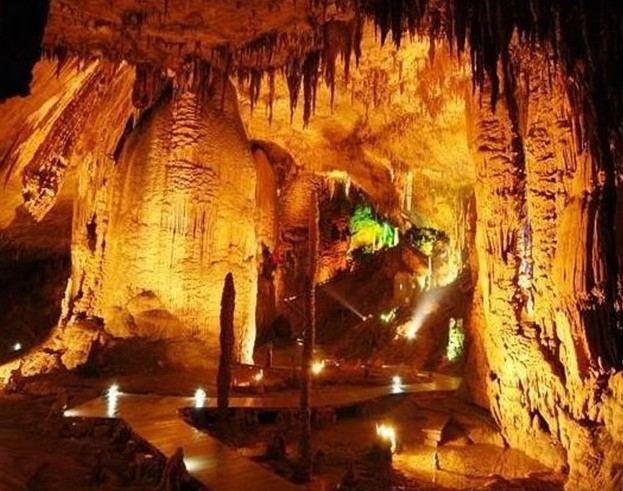 國家級重點風景名勝區(qū)——九洞天位于貴州省大方縣,距離大方縣城60公里。景區(qū)全長達23公里,總面積約80平方公里,烏江干流六沖河流經(jīng)大方、納雍兩縣之間的一段以伏流位置的喀斯特溶巖綜合地帶。在這一段長約6公里的河道上,箱形切割頂板多出塌陷,形成了多個形狀、大小各異的天窗狀洞口,使得伏流一路明暗交替,組成集伏流、峽谷、溶洞、天橋、天坑、石林、瀑布、冒泉及鐘乳石、卷曲石、生物化石等為一體的雄奇瑰麗的溶巖大觀。因其天窗洞口共有九個,因此謂之“九洞天”。一洞天“月宮天”為旱洞,內(nèi)寬闊,是進洞的大廳,面積約3000多平方米,平均高為80米,洞壁洞頂上鐘乳石千奇百怪,壯麗非凡;二洞天“雷霆天”現(xiàn)辟為發(fā)電洞室,通過閘門控制引取落差11米的水發(fā)電,是國內(nèi)罕見的無廠房天然洞內(nèi)發(fā)電站,極為經(jīng)濟;三洞天“金光天”洞內(nèi)高大寬闊,迂回幽靜,左岸石壁異常光滑,如刀砍斧削,右岸壁上懸掛著五顏六色的鐘乳石;四洞天“玉宇天”是由多個洞穴組成的天然景區(qū),洞內(nèi)鐘乳石或似塔形,或如殿宇,晶瑩剔透,形象逼真;五洞天“葫蘆天”呈葫蘆狀的暗湖,上收下放,自然而成;六洞天“象王天”為相連的天生橋洞窗,頂部距水平面約百米,十分險要;七洞天“云霄天”是一大旱洞,洞內(nèi)千瘡百孔,互相可通,能容納數(shù)千人;八洞天“寶藏天”洞口寬僅二三米,而高達數(shù)十米,好似高樓窄巷,陽光折射進去,水面光色變幻無窮;九洞天“大觀天”內(nèi)的溶洞共分三層,下層奇形怪狀的水洞暗湖與八洞天相通,四通八達。中層有一座長90米、寬120米的巨大天生橋,成“門”字形,從橋下廣場俯視觀水洞,神秘莫測,抬頭仰望,蒼穹被畫為兩個巨大的圓弧,好似牛郎織女相會時的鵲橋。上層是與天生橋拱平行的洞廳,面積約數(shù)萬平方米,無數(shù)洞穴口相通相連,形成立體迷宮,舉世罕見。版權(quán)所有山東聊城聊之旅國際旅行社有限公司,轉(zhuǎn)載必究!2004年2月,九洞天風景名勝區(qū)經(jīng)國務(wù)院批準列入第五批國家級風景名勝區(qū)名單。