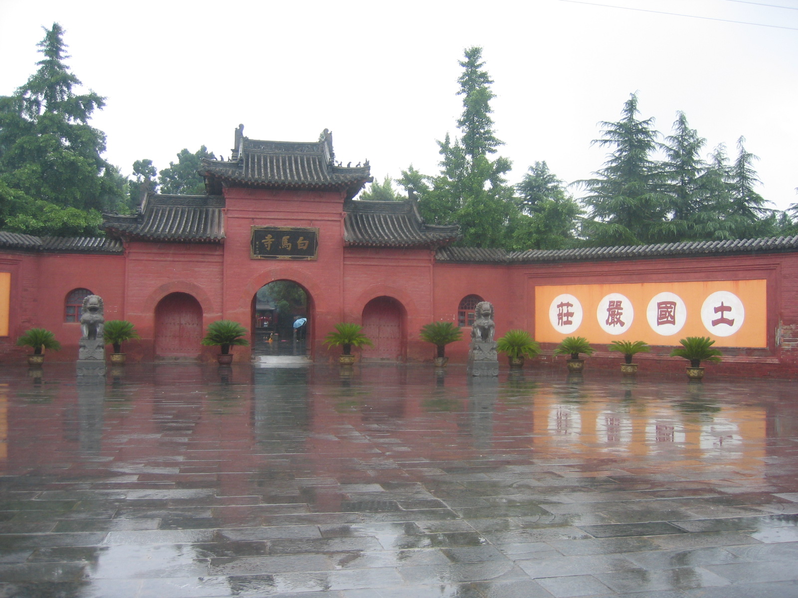洛陽白馬寺[2]為中國第一古剎,世界著名伽藍(lán),乃佛教傳入我國后官辦的第一座寺院,被中外佛教界譽(yù)為"釋源"、"祖庭"。白馬寺創(chuàng)建于東漢永平十一年(公元68年)。史載:東漢永平七年,漢明帝劉莊因夜夢金人,遣使西域拜求佛法。公元六十七年,漢使及印度二高僧?dāng)z摩騰、竺法蘭以白馬馱載佛經(jīng)、佛像抵洛,漢明帝躬親迎奉。公元六十八年,漢明帝敕令在洛陽雍門外建僧院,為銘記白馬馱經(jīng)之功,故名該僧院為白馬寺。 白馬寺座北面南,總面積二百余畝,其主體建筑有:天王殿、大佛殿、大雄殿[2]、接引殿、毗盧閣五層殿堂及中國第一釋迦舍利塔。白馬寺是一處保存完整、古色古香的古建筑群。1961年被國務(wù)院公布為第一批重點(diǎn)文物保護(hù)單位。1983年,被國務(wù)院確定為漢族地區(qū)佛教全國重點(diǎn)寺院。2001年1月,被國家旅游局評為首批4A景區(qū)。
