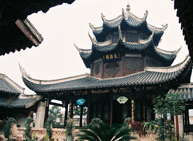 文昌閣,位于貴陽城區(qū)東隅,始建于明萬歷三十七年(1609年),占地1200平方米,以設計巧妙、結(jié)構(gòu)獨特而著名,是省級重點文物保護單位。道教廟宇。在貴州省貴陽市東門月城上。始建于明代萬歷三十七年 1609),清代康熙八年(1669)重修,雍正、乾隆、嘉慶、道光時均有維修和擴建。該閣是一座九角三層寶塔形建筑,兩邊設有配殿,前為聯(lián)結(jié)配殿的齋房,平面布局成四合院形。主樓高約20米,面闊11.47米,進深11.58米,為三層三檐、不等邊九角攢尖頂,各層插拱較多,斗呈曲線,翹角不高,窗花和枋板施有彩繪,其建筑風格頗具地方特色。原為供奉文昌帝君之所,現(xiàn)是貴陽文物保護單位。