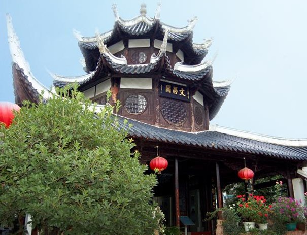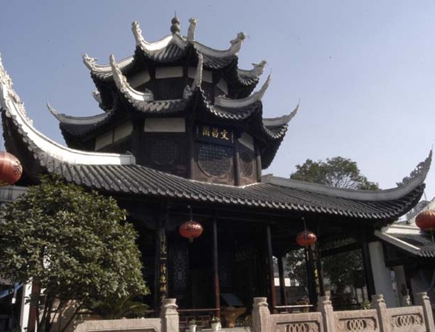 文昌閣,位于貴陽城區(qū)東隅,始建于明萬歷三十七年(1609年),占地1200平方米,以設計巧妙、結(jié)構(gòu)獨特而著名,是省級重點文物保護單位。道教廟宇。在貴州省貴陽市東門月城上。始建于明代萬歷三十七年 1609),清代康熙八年(1669)重修,雍正、乾隆、嘉慶、道光時均有維修和擴建。該閣是一座九角三層寶塔形建筑,兩邊設有配殿,前為聯(lián)結(jié)配殿的齋房,平面布局成四合院形。