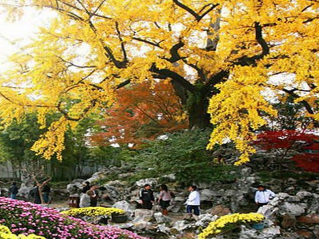 盤(pán)縣古銀杏風(fēng)景名勝區(qū)位于安順盤(pán)縣城關(guān)鎮(zhèn)35公里之石橋鎮(zhèn)妥樂(lè)村,該景區(qū)面積約146平方公里,包括石橋樂(lè)民鎮(zhèn)景區(qū)、水塘鎮(zhèn)景區(qū)、城關(guān)景區(qū)、火鋪鎮(zhèn)景區(qū)。景區(qū)內(nèi)生長(zhǎng)著上千株古銀杏樹(shù),最小的有300多歲,年長(zhǎng)的達(dá)上千歲。專(zhuān)家認(rèn)為,如此集中連片且與村寨融為一體的古銀杏群落,在世界上十分罕見(jiàn)。當(dāng)?shù)卣?jì)劃為此申報(bào)上海大世界吉尼斯記錄。貴州省已經(jīng)把盤(pán)縣古銀杏風(fēng)景名勝區(qū)列為省級(jí)風(fēng)景區(qū)。銀杏樹(shù)是3000萬(wàn)年前地球遺留下來(lái)的古植物, 人稱(chēng)“活化石”,銀杏樹(shù)的樹(shù)形、葉片奇特、精巧, 四季分明,春天青翠,秋天金黃,其果實(shí)“白果’’可以入藥,是不可多得的觀(guān)賞樹(shù)種。盤(pán)縣古銀杏風(fēng)景名勝區(qū)內(nèi)的銀杏樹(shù)極其獨(dú)特。從小徑、田埂、屋基下、石階上,向四面八方伸展出來(lái),把整個(gè)妥樂(lè)村托在了樹(shù)根之上。夏日里層層疊疊的綠葉現(xiàn)在全變成了金黃色,落葉鋪滿(mǎn)了石板小徑、黑瓦的房屋、收獲后的稻田……就連村中清澈透明的小溪、溪上的小石橋,也被扇形的銀杏葉裝點(diǎn)成了金色。據(jù)介紹,出售銀杏果實(shí),是這當(dāng)?shù)卮迕竦闹饕?jīng)濟(jì)來(lái)源之一,因而村民們對(duì)古銀杏樹(shù)倍加愛(ài)惜。銀杏全身是寶,版權(quán)所有山東聊城聊之旅國(guó)際旅行社有限公司,轉(zhuǎn)載必究!果仁稱(chēng)“白果”,是珍貴的藥物和不可多得的保健佐食佳品。從銀杏葉中能提煉出治療心血管病的藥物。當(dāng)?shù)卮謇锶硕嚅L(zhǎng)壽,平均壽命70至80歲。景區(qū)內(nèi)妥樂(lè)村最長(zhǎng)壽的老人106歲,面色紅潤(rùn),每天喝二兩酒,每頓吃2碗米飯、一碗肉、兩個(gè)土豆。為了改善古銀杏樹(shù)的生態(tài)環(huán)境,當(dāng)?shù)卣?jì)劃搬出大約三分之二的村民,只保留古樸的木瓦房和少量村民。希望這個(gè)自然界留給人們的奇特村莊可以一直留存下去,為游人和當(dāng)?shù)厝藥ソo多的享受。