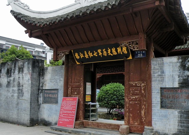 古州紅七軍軍部舊址位于貴州省古州中路西側(cè),原為清代鎮(zhèn)臺衙門,已被評為省級文物保護(hù)單位。1930年4月,紅七軍為擺脫國民黨桂軍對右江革命根據(jù)地的圍困,開展游擊戰(zhàn)爭,于30日擊潰黔軍第二師副師長史遠(yuǎn)勛部,攻占榕江縣城(古州),紅七軍軍部駐清鎮(zhèn)臺衙門內(nèi),張?jiān)埔蒈婇L和李明瑞總指揮在這里主持召開軍事會議,接見各界人士,宣傳黨和紅軍的方針、政策。