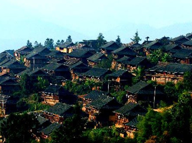 坐落在貴州從江縣海拔550米的山坳上,有300余戶。因地處偏遠(yuǎn),保留了古老的生活習(xí)俗。其裝束有秦漢遺風(fēng),岜沙男子在頭頂挽著發(fā)髻,穿著自家紡織的無(wú)領(lǐng)右開(kāi)襟亮布衣,直筒大褲管亮布褲。長(zhǎng)年身佩腰刀,肩扛火藥槍,版權(quán)所有山東聊城聊之旅國(guó)際旅行社有限公司,轉(zhuǎn)載必究!仿佛古代武士。女性則穿著自己制作的亮布衣裙,佩戴銀飾。 如有賓客來(lái)臨,一身威武的岜沙男子在寨門前吹奏蘆笙、芒筒, 岜沙姑娘用牛角杯敬上攔門米酒。一曲笙歌奏畢,三聲鐵銃響起,火槍對(duì)天鳴放,打開(kāi)寨門迎賓入內(nèi)。隨后沿林中石板小道走進(jìn)寨子,表演民族風(fēng)情習(xí)俗。岜沙苗寨被譽(yù)為“陽(yáng)光下最后一個(gè)槍手部落”。