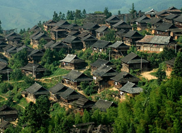 岜沙苗族部落僅2000余人,分住在貴州省從江縣城南6公里處月亮山麓茫然林海中的5個(gè)寨子里。走進(jìn)岜沙,隨處可見(jiàn)茂密的森林。他們以稻作為主,狩獵為伴。這里箐黑林密,鳥(niǎo)道蠶叢,具有很強(qiáng)的隱蔽性,千百年來(lái)極少有外人進(jìn)入。岜沙村不大,村寨建于山粱坳口及面向都柳江一側(cè)的半坡上。村寨木樓古樸、簡(jiǎn)單;四周則為密林環(huán)繞,環(huán)境幽雅;村民全系苗族,衣著傳統(tǒng),發(fā)勢(shì)奇特。