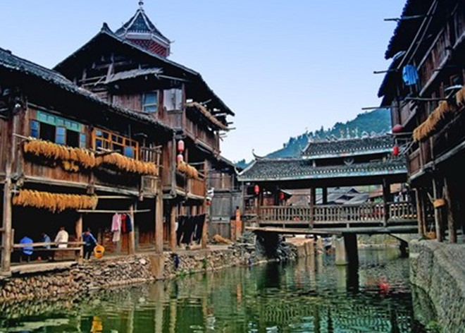 肇興,舊稱[肇洞],位于黎平縣城南70公里,是全國(guó)最大的侗寨,有世界最大的侗寨鼓樓群。全寨居住3415人,聚居侗族3125人,全為陸性侗族,分為仁、義、禮、智、信五大房族,各自建有鼓樓、花橋,大小不一,高低不等,風(fēng)格各異,別具匠心。寨子里桿欄式吊腳樓房,鱗次櫛比,疏密有致,全用杉木建造。有眾多的花橋、戲樓、歌坪、禾晾、谷倉(cāng)、瓢井、侗民居中等建筑,布局緊湊,結(jié)構(gòu)合理。寨上有侗歌隊(duì)、侗戲班,每蓬節(jié)日,肇興鄉(xiāng)以及毗鄰侗寨群眾,歡聚鼓樓、歌坪,版權(quán)所有山東聊城聊之旅國(guó)際旅行社有限公司,轉(zhuǎn)載必究!舉行熱情洋溢的大歌、踩歌堂、抬官人等傳統(tǒng)活動(dòng)。