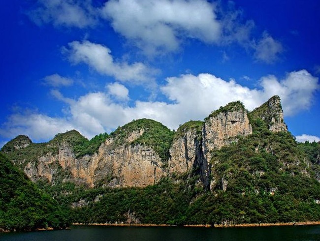 下舞陽河景區(qū)系舞陽河區(qū)十風(fēng)景名勝大景區(qū)之一,位于鎮(zhèn)遠(yuǎn)縣與施秉縣之間,規(guī)劃面積 121 平方公里,景點(diǎn) 33 處。景區(qū)以高峽平湖、瀑泉飛流為主體,山色水韻風(fēng)光迷人。"破鏡重圓"半含水中半露崢嶸奇妙的三疊水珠落玉盤直瀉深潭;鴛鴦戲水,情深意濃;呼大令喊泉神靈有喊必應(yīng),之水出止呼水隱;山峰神態(tài)似"孔雀開屏",形態(tài)逼真;" 圣師徒"前往探幽 … …