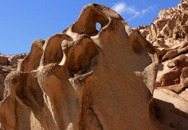 怪石山距巴里坤縣城60公里,有10多公里的便道與縣城至煤礦的柏油公路相接,位于巴里坤湖西北7公里外小夾山的最東端。怪石山最怪的就是滿山的形狀各異的小石窟,幾座山從山頂?shù)缴侥_都是“千瘡百孔”,有的稱“蜂窩崖”,有的稱“千佛洞”或“萬佛龕”、“千窟崖”等。每當(dāng)下暴雨時(shí)水從山頂流下,那山便成了無數(shù)個(gè)小水簾洞,景致令人叫絕!怪石山下就有一眼泉水,是著名的巴里坤八景之一——“鏡泉宿月”的上鏡兒泉所在。版權(quán)所有山東聊城聊之旅國際旅行社有限公司,轉(zhuǎn)載必究!此泉實(shí)為一水井,水量大,水質(zhì)好。山頂上的石棺王爺墳說明了怪石山一帶悠久的歷史、繁榮的絲路商貿(mào)活動(dòng)和極險(xiǎn)要的軍事地位,1999年它的旅游價(jià)值才被發(fā)現(xiàn)并隨之開發(fā)。