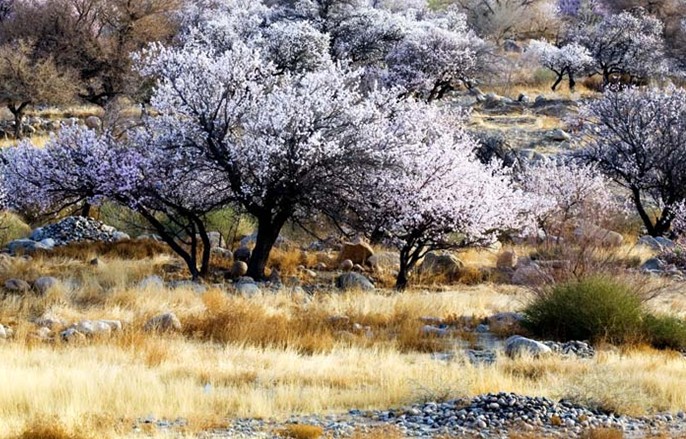 在今天,廟爾溝里仍然還能看到行宮的遺跡。在行宮的背后有一條小路可以通向西北面的一座砂巖山,山上排列著五座佛教洞窟,洞壁上壁畫(huà)的痕跡已經(jīng)破敗難辨,行宮西面的山腰上還存有一座7-12世紀(jì)的佛寺遺址。版權(quán)所有山東聊城聊之旅國(guó)際旅行社有限公司,轉(zhuǎn)載必究!廟爾溝的山谷在春天會(huì)開(kāi)滿杏花,一直到秋季山岡起伏的斜坡全被豐富多樣的植物覆蓋著,成片的核桃樹(shù)和榆樹(shù)形成了寬闊的林帶,山谷中還分布著一處處綺麗的高山草地,碩大的鮮美的花朵常常使山谷散發(fā)出富于光澤的紅、藍(lán)、淡紫色的色彩。這里空氣涼爽,在夏季是躲避酷暑的好地方。
