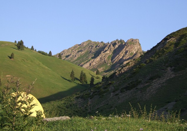 從烏魯木齊出發(fā),抵達(dá)大河沿后,租用越野車或卡車至五星牧場(chǎng)扎營(yíng)。這里就是徒步的起點(diǎn)。