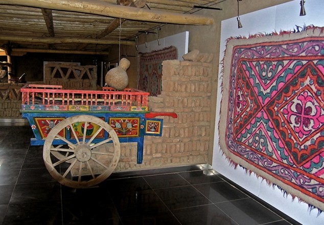 鄉(xiāng)巴藝棧是大漠土藝館歷時兩年建造而成的,可以說它是新疆維吾爾民俗藝術的精華薈萃之地,可讓游客在飽覽新疆民俗展示的同時,還可以親歷參與民間手工藝的制作流程。展品括土陶制品、桑皮紙、民族傳統(tǒng)服裝、鞋帽、艾德萊絲綢、土織機、土印花布、花氈、土機琢玉、帕拉斯織毯土機,木制品如木箱、搖床、旋木碗土機,金屬制品如銅壺、銅盤等等。這些民俗藝術品是土藝館歷時十載從民間收集來的,其中有的已消失,有的瀕臨滅絕,在民間已稀有且難以見到,鄉(xiāng)巴藝棧是大漠土藝館為挽救民族民間藝術遺產(chǎn)所作的一項工作,是維吾爾民俗的一個縮影。