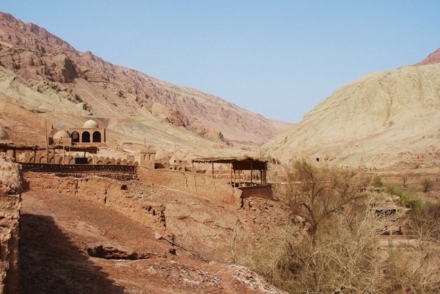 是位于大峽谷南出口溝谷中的一個古老寧靜的維吾爾族村落,有著1700多年的歷史,是迄今新疆現(xiàn)存的最古老的維吾爾族村落。它分布在綠塔聳立的清真大寺四周,約有二百余戶人家。這個村莊,完整地保留了古老的維吾爾族傳統(tǒng)和民俗風(fēng)情。人們常常日出而息、日落而作,使用古老的維吾爾語交際,穿著最具民族特色的服飾,走親訪友依然是古典的驢車代步。 在這里生活的老人、青年、兒童的臉上,始終洋溢著平靜、自足、幸福的神情,給人以純樸、悠閑、與世無爭的美好印象。在古老的村落中,居民們繼承了兩千多年來用黃粘土建造房屋的傳統(tǒng)習(xí)慣。一些建筑還遺留著佛教文化和伊斯蘭教文化交相融合的印記。房屋建筑均是以黃粘土制坯建成的窯房,有大有小,有高有矮;有一層的,也有兩層以上的;有獨立成房的,也有沿山勢連成一片的。其特點是經(jīng)濟實惠、冬暖夏涼。
