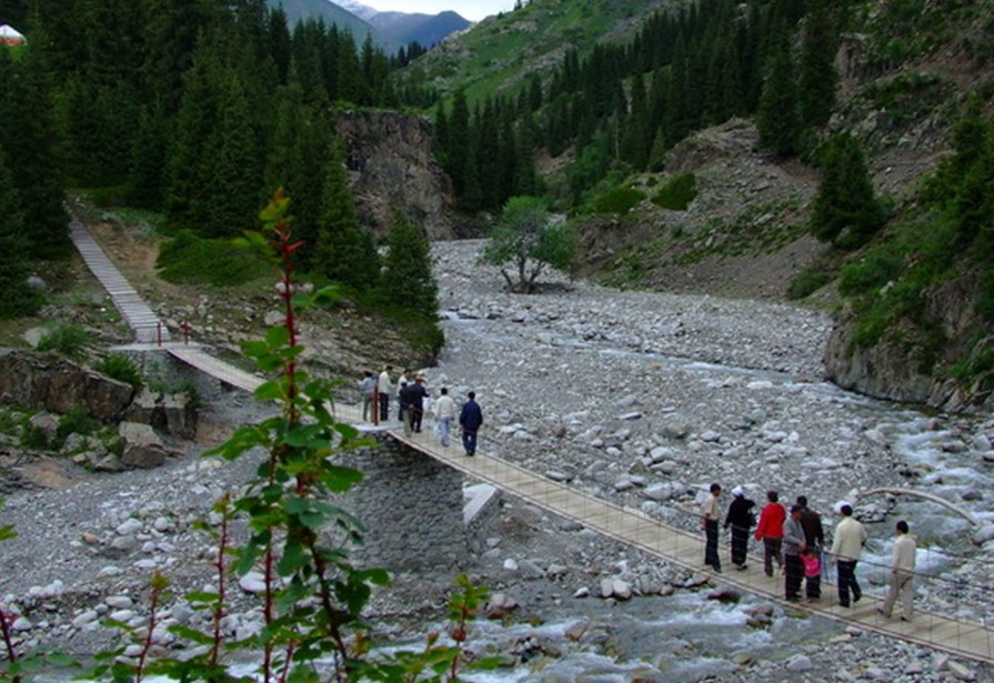 夏提風(fēng)景區(qū)位于溫泉縣哈日布呼鎮(zhèn)西北,阿爾夏提山以西,海拔1620米,由阿爾夏提V型河谷的中游部分河段組成,主要植被為云杉、胡楊、河柳等樹(shù)種。地?zé)釡厝哐郏渲幸浴跋扇弊淙喝?,該泉海?695米,泉水從一塊石板裂縫中噴涌而出,景象壯觀。水溫38℃~42℃,可治療風(fēng)濕性關(guān)節(jié)炎,婦女不育癥等其他疾病,深受游人的歡迎。